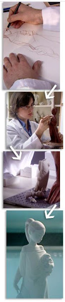 De este boceto surgen los múltiples fragmentos y posteriores moldes que permitirán crear la figura de porcelana, en un complejo proceso.
