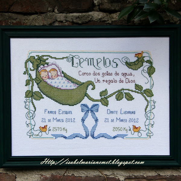 Finalmente he terminado el natalicio de los gemelos.....He disfrutado mucho haciéndolo y también viendo la cara de satisfacción de mi prima al verlo.