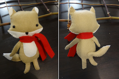 He pegado cada una de las partes del cuerpo del zorro entre si con hilo y aguja y creado esta bufandita para él. La medida es de 26 cm de largo por 1.5 cm de ancho. El → Patrón del Zorro esta en proceso de publicarse...