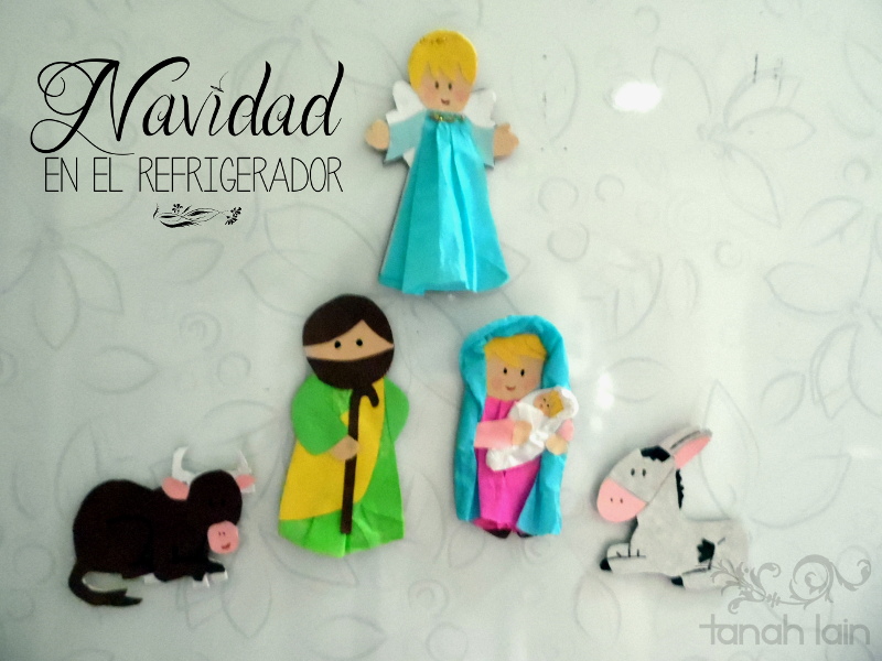 Hoy Lunes, les dejo unos imanes con las figuras principales en el belén para que ustedes descarguen y puedan adornar su refrigerador. Yo, como les muestro a continuación los recorte con papeles de colores y los adorne, pero si se les hace complicado sobretodo a los niños pueden colorearlo o llenarlo con diamantina, en fin, el cielo es el límite.