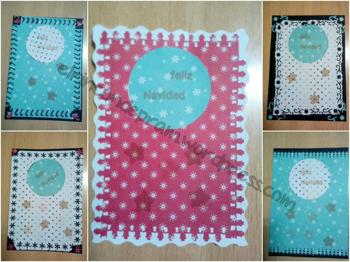 Aprovechando que ya estaba en faena, hice más tarjetas navideñas con los restos de los papeles usados en el reto.