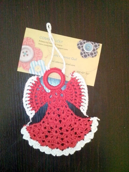 Y como colofón al encarguito también se ha ido para Alicante un angelito que se ha vestido de los mismos colores: rojo y blanco. Espero que Elisabet disfrute de estas fiestas junto a toda su familia.