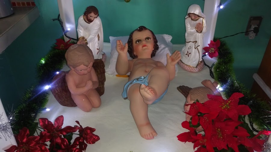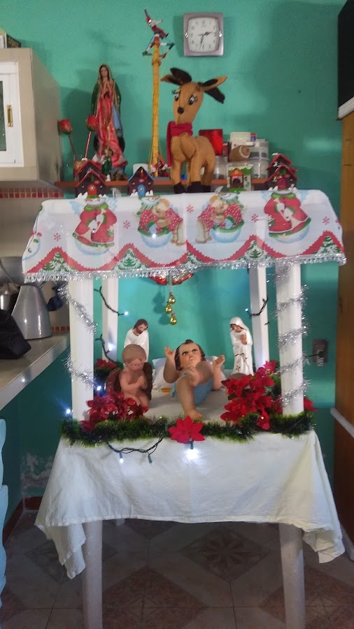 Al fin se me hizo montar un nacimiento como dios manda, y se me ocurrió intentar hacerle un pesebre, ya estaba por poner al churri hacerme uno de pallets pero después pensé ya no tengo tiempo de esperarlo hasta que pueda y que monto dos mesas plásticas y et voilá