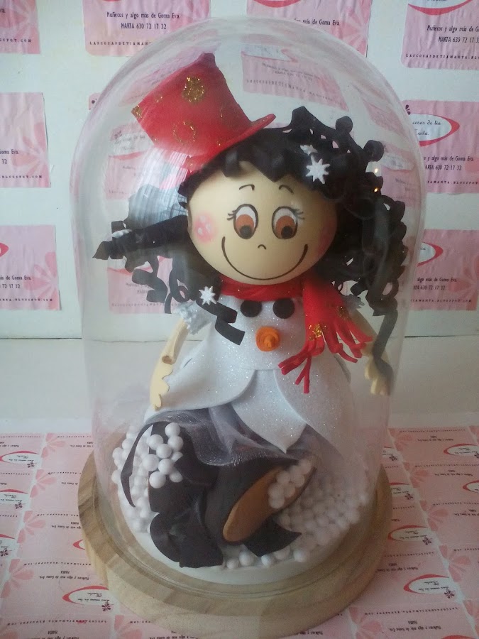 4. Para hacer el vestido usaremos tull y goma Eva con brillantina blanca. Pegamos y montamos las piezas.
