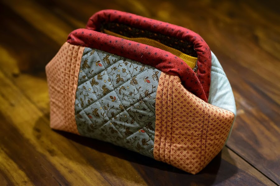 Dicho esto, te cuento que el proyecto de hoy es una bolsa-neceser con boquilla cuadrada que cierra con "clack" (no se si tiene nombre la verdad). La hice hace un tiempo en un monográfico que me regalo el esposo por mi cumple en la tienda "patchwork y algo más" (en Alcalde Sainz de Baranda en Madrid). Me lo pase genial, aprendí muchos tips (cosas que no hacía de forma correcta y no lo sabía) y pasé un rato que disfrute mucho.Utilicé por pirmera vez en lugar de guata normal, espuma estabilizadora, y me ha encantdo el resultado, coge much más cuerpo y se acolcha muy bien.