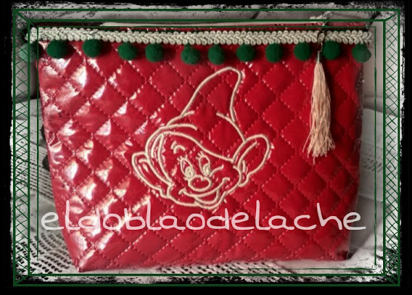 En tela color celeste con adornos en color negro y rojo. Una bonita combinación que se va para Tenerife.