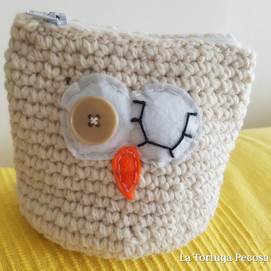 Se trata de una colección muy especial de búhos neceser para guardar un montón de cositas bonitas. La parte exterior es tal cual un buhillo, el búho comienza a ser cosido en punto bajo en circulo y luego vas subiendo hasta tener la altura y anchura deseada de búho.