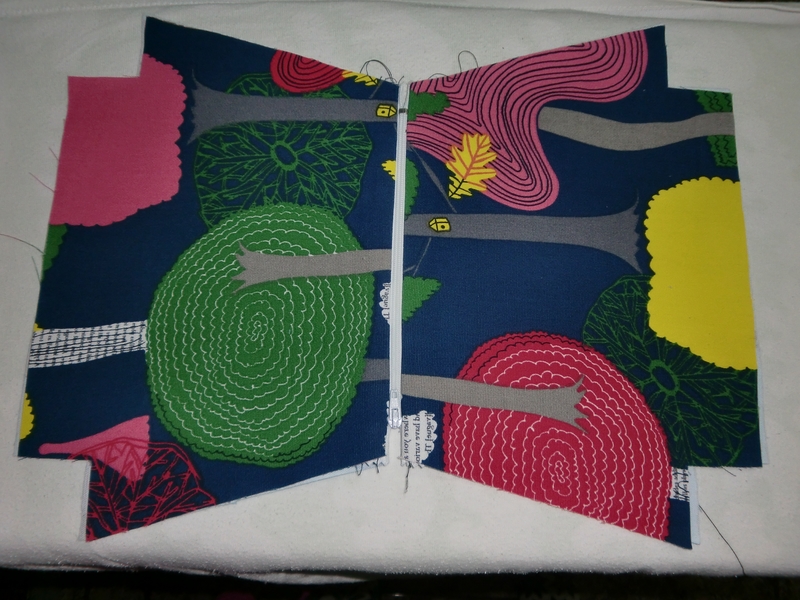 Y ya está cosida nuestra cremallera! Colocamos una pieza del forro y otra del exterior a cada lado y planchamos las costuras para asentarlas un poco.