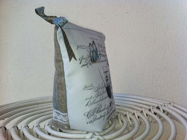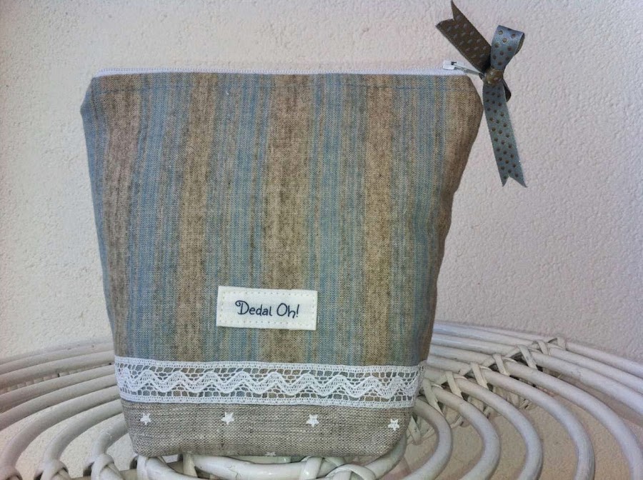 La parte de atrás está hecha con una tela japonesa que me chifla, y un lino con estrellas blancas impresas. En el corte coloqué una puntilla para darle un toque romántico pero sin pasarme, porque el motivo impreso tampoco requiere mucha floritura: