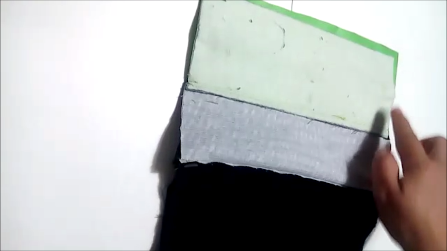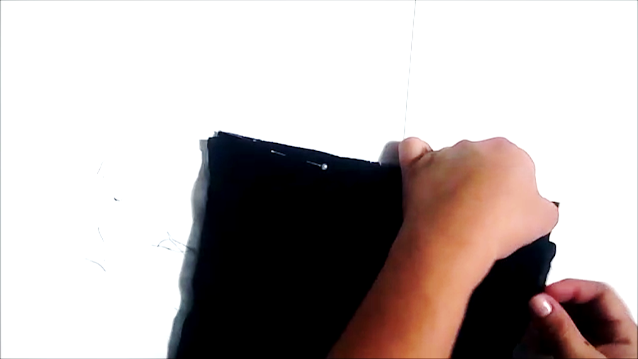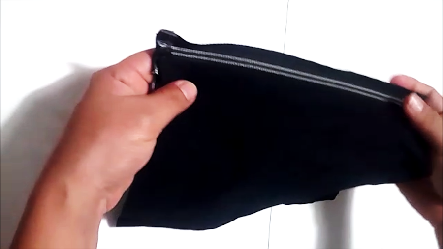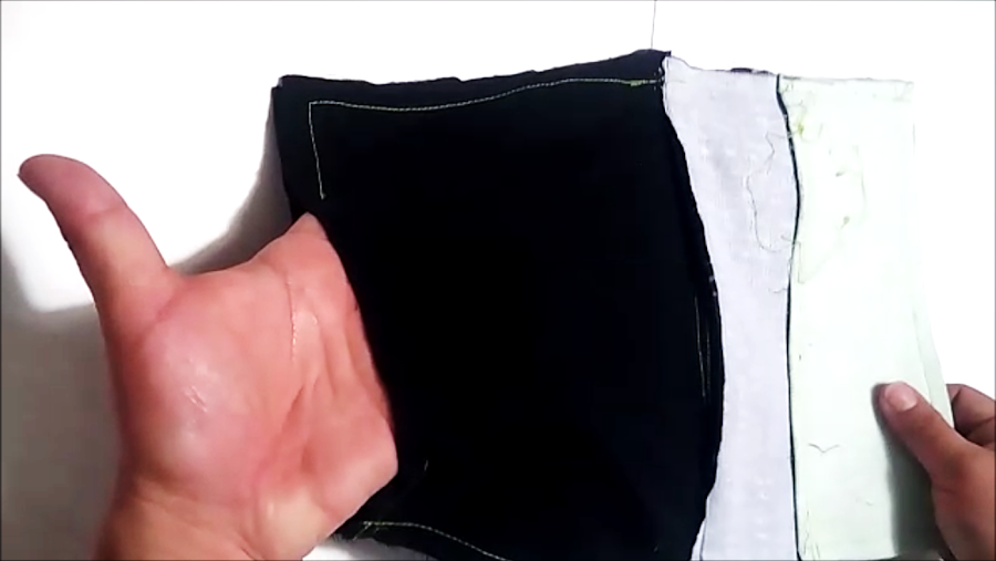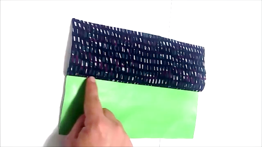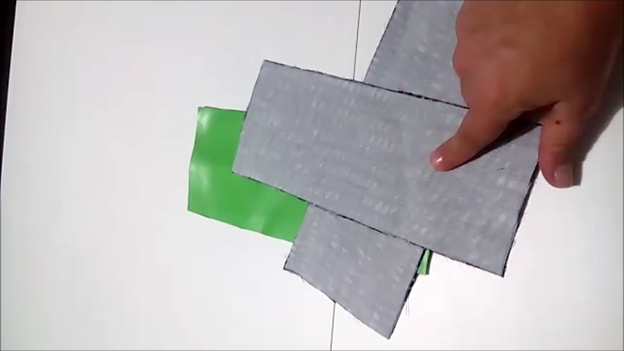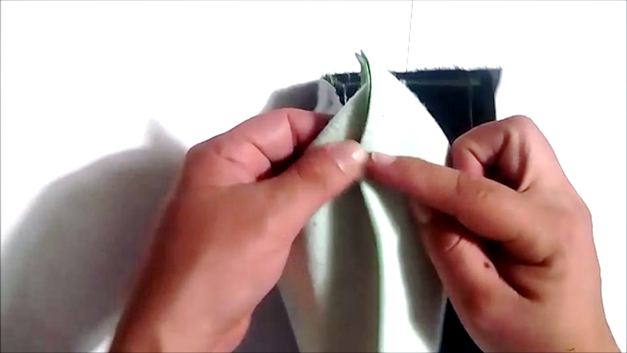 Ya cosido, le haremos una pequeña base, tomando para ello las esquinas y haciendo coincidir la costura lateral con la de debajo de tal manera que formemos un triángulo, así.