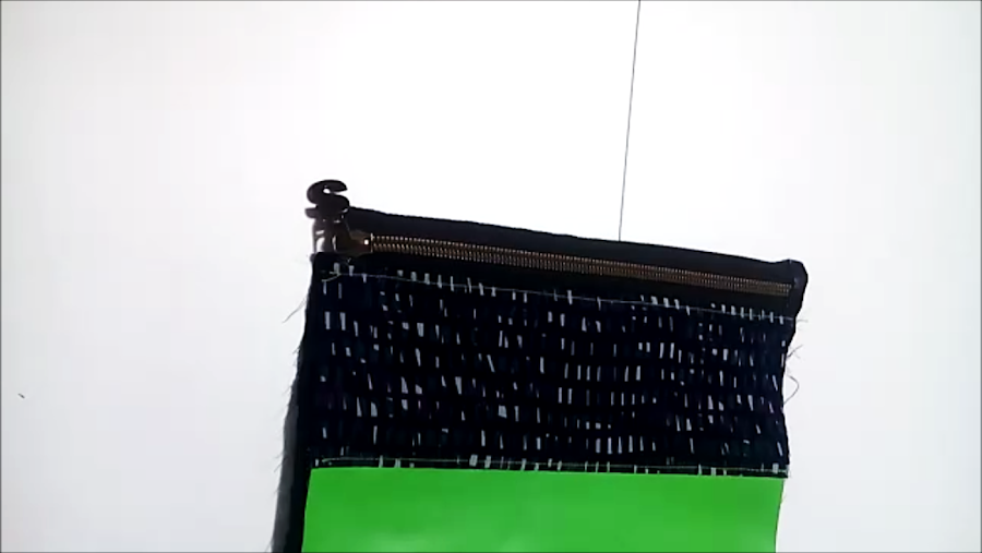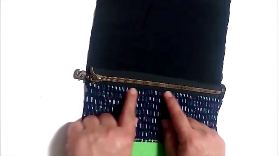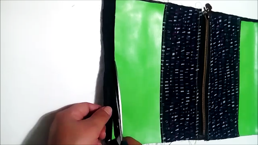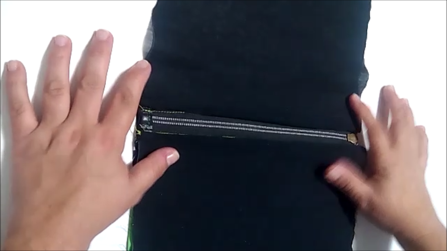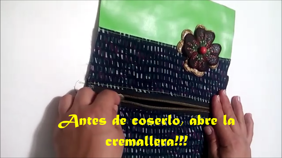 Y colocamos encima, igualando con el borde de la cremallera, el otro cuadrante “exterior”; y cosemos por el borde.