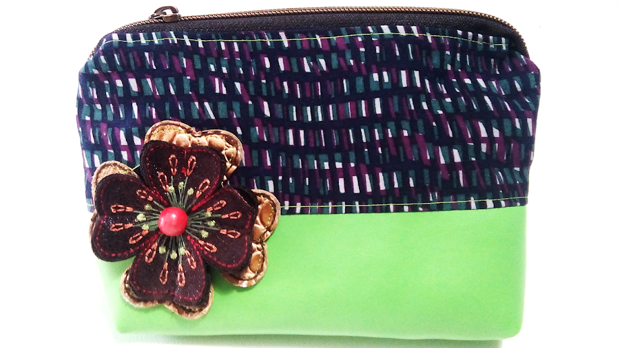 Con restos de un bolso de polipiel y una camisa en desuso, he hecho este llamativo neceser al que puedes darle la utilidad que quieras: desde llevar tu móvil, cosméticos etc., hasta tus artículos de aseo más íntimos.