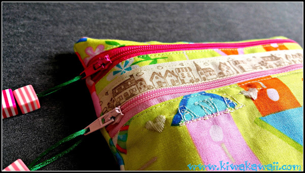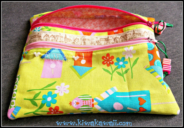 Elegí tela de casitas de pajaritos para el exterior, y una cinta de casitas para decorar una de las cremalleras.