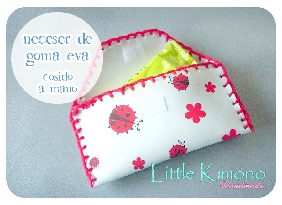 Hoy os enseño un pequeño neceser hecho con goma eva y cosido a mano para guardar toallitas húmedas, para llevar en el coche, en el bolso o en el cambiador del peque ;)