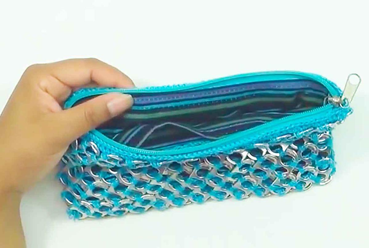 ¡Mira qué neceser tan chulo se puede hacer con anillas de latas de bebidas!