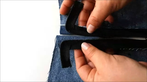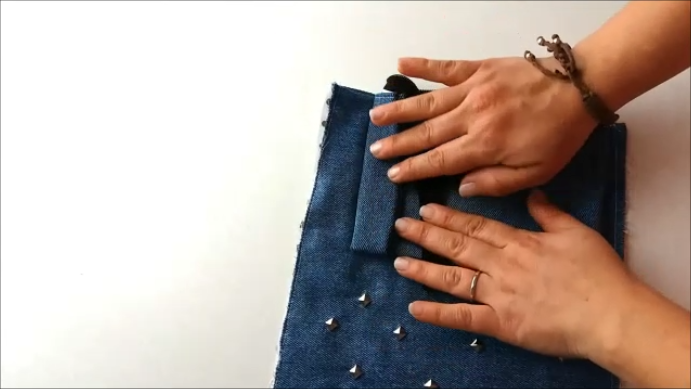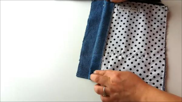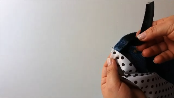 Ponemos la entretela a las telas que irán en el exterior. Como ya os he dicho antes, este paso lo he omitido porque la tela de mezclilla es bastante firme.