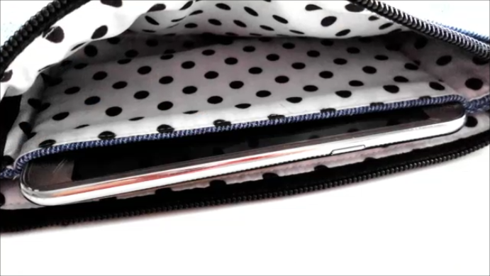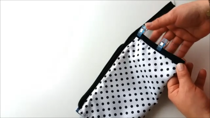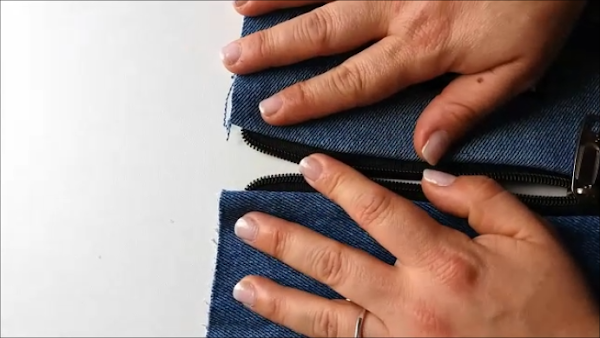 Luego volvemos a doblar pero llevando el lado de la cremallera hacia el otro borde, así: