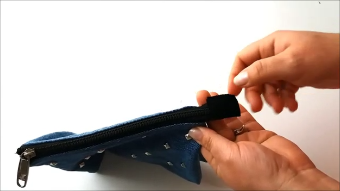 Una vez hecho el doblez, cortamos el sobrante de cremallera y nos debe quedar de ésta manera: