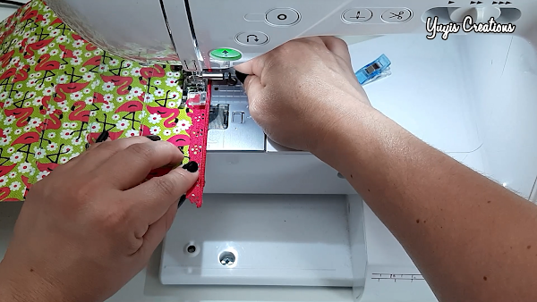 Cosemos la cremallera. Mi cremallera decorada se debe colocar por fuera para que se vea el bonito diseño que tiene. Primero se cose un lado, se empieza a coser por el otro lado y antes de acabar se le quita el carro o deslizador para que se pueda coser mejor.