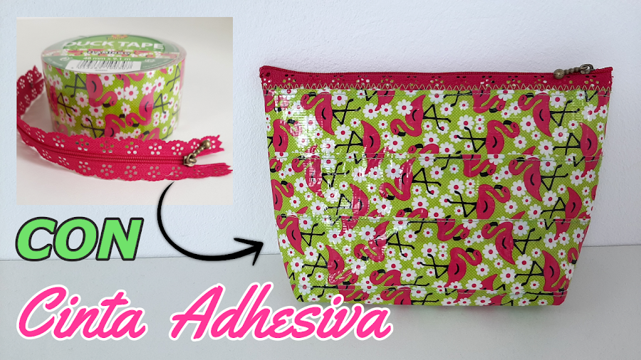 Aprovechando una linda cinta adhesiva que encontré en un supermercado he hecho este neceser o estuche con cremallera decorada.