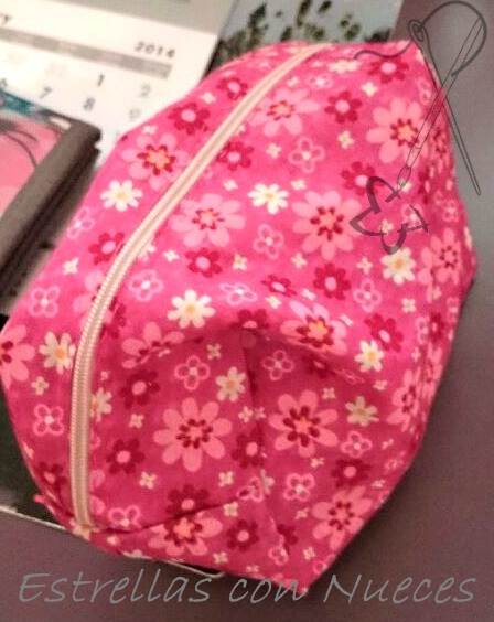 El neceser lo hice yo completamente desde cortar la tela y coserla, hasta ponerle la cremallera, y os tengo que decir que tuve que descoserlo una vez porque no me salía bien lo de darle la formita cuadrada y me las vi un poco negras... jajaja pero aún así lo conseguí y es que yo soy de las que hacen y deshacen hasta que me sale lo que me gusta! y me da igual repetirlo 300 veces si al final me sale como yo quiero!