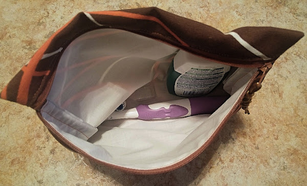 Para ello elegí esta loneta marrón, un retal de hace ya tiempo. En mi armario hay muchas telas, pero pocas de ellas son masculinas... Y en el interior algodón blanco, sencillo y práctico!