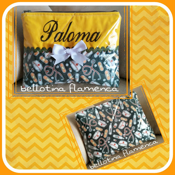En tela color celeste con adornos en color negro y rojo. Una bonita combinación que se va para Tenerife.