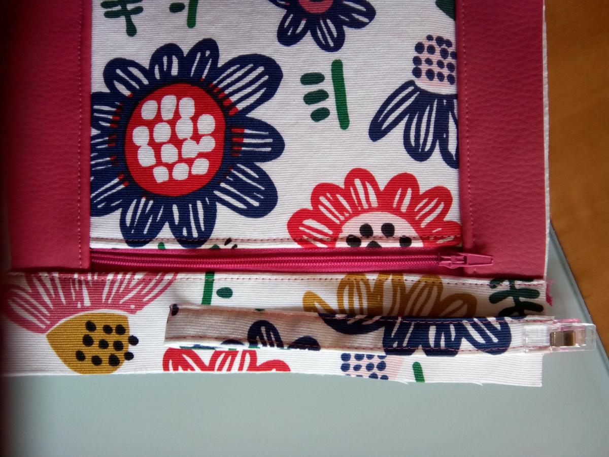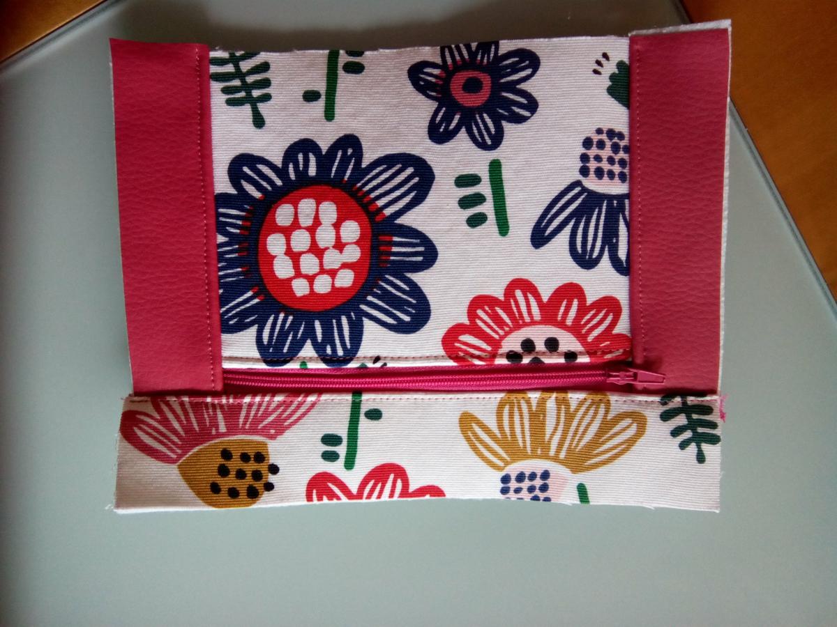 Comenzamos formando la pieza delantera principal con la cremallera de 15 cm. Colocamos la cremallera sobre la pieza del forro del bolsillo y encima colocamos la pieza exterior de 16,5 X 12,5 cm. y cosemos a 0,7 cm del borde. Volvemos del derecho y hacemos una costura de asentamiento. Doblamos la tela del bolsillo colocándola debajo del otro lado de la cremallera y encima de esta con el derecho hacia abajo colocamos las dos piezas de polipiel de los laterales de 4 X 13,5 cm. y cosemos a 0,7 cm. Volvemos del derecho y hacemos una costura de asentamiento. Colocamos la pieza superior de loneta de 21,5 X 7 cm. y la enfrentamos con el derecho de la cremallera y pasamos un pespunte. Volvemos del derecho y hacemos una costura de asentamiento. En las telas de forro y en las dos exteriores hacemos en las esquinas inferiores dos cuadrados de 2×2 cm y recortamos. Para formar el asa hacemos como siempre doblamos a la mitad y luego otra vez los lados a la mitad ayudándonos de la plancha. Y pasamos una costura por cada lado. Sujetamos el asa en la posion donde queremos colocarla. Unimos la pieza delantera exterior con la cremallera principal y por el revés ponemos la tela de forro. Cerramos los laterales y la base, dejando un hueco en el forro para poder darle la vuelta. Cerramos las cuatro esquinas.Volvemos del derecho y cerramos el hueco que habíamos dejado en el forro. Facilito de hacer que podéis empezar y terminar el mismo día.Si os animáis a hacerlo no os olvidéis de etiquetarme en vuestras redes sociales o enviarme una foto por email para que pueda verlo.Paloma