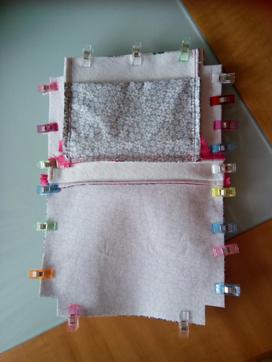 21,5 X 17 cm: 1 tela principal, 2 de forro, 1 guata termoadhesiva, 2 entretela media