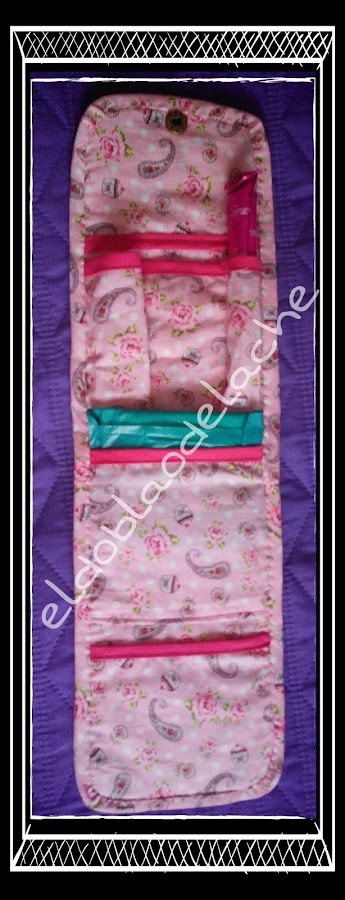 En tela color celeste con adornos en color negro y rojo. Una bonita combinación que se va para Tenerife.