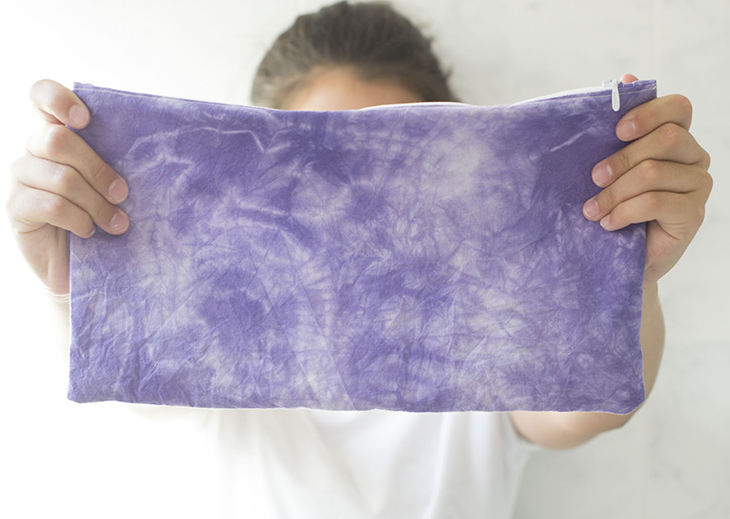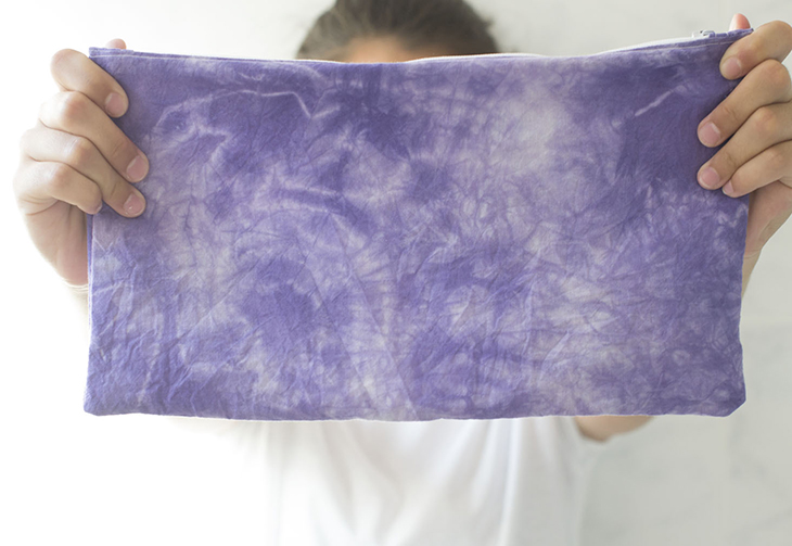 Primero debemos cortar un cuadrado de tela del tamaño que queramos y someterlo al tie dye.