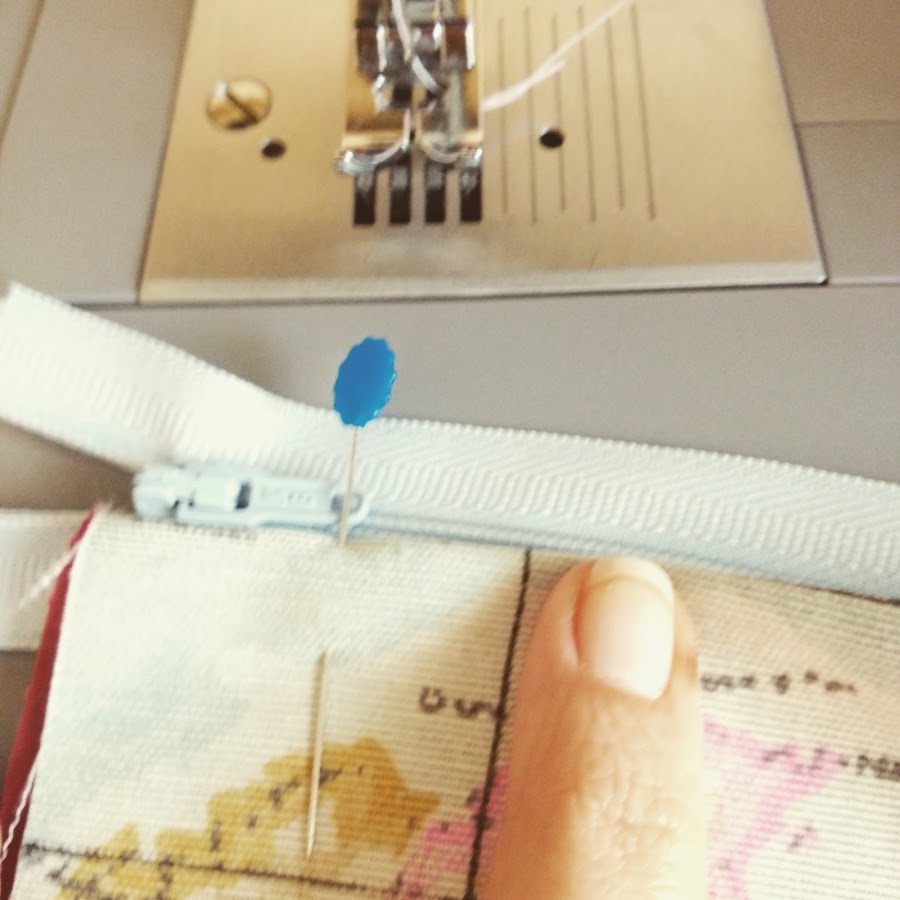 Lo primero de todo, junta las dos telas revés con revés, ahora haz un pequeño doblez para un mejor acabado y hazlo coincidir con la cremallera, cuanto más pegada esté a los dientes de la misma mejor.