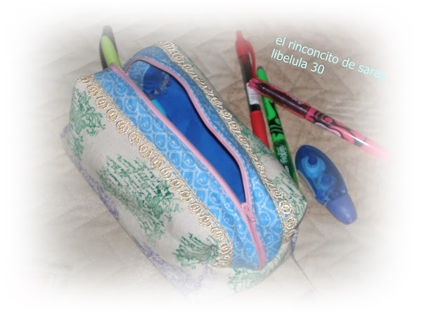 A finales del mes de agosto fue el cumple de mi hija cristina y ella quería que le hiciera un estuche para su nueva etapa de estudios . A mi me gustaba mucho un neceser que hizo mi amiga Inma muchas la conocéis , yo le reducid un poco las medidas para que fuera un estuche .