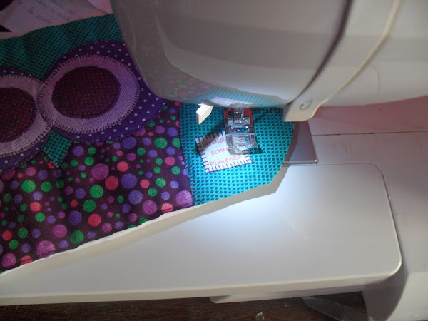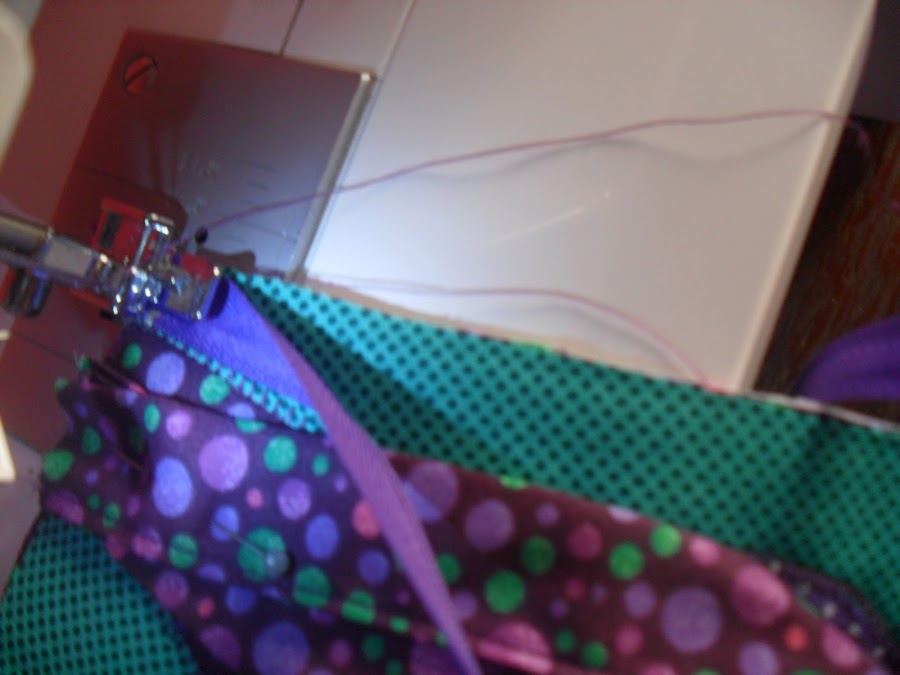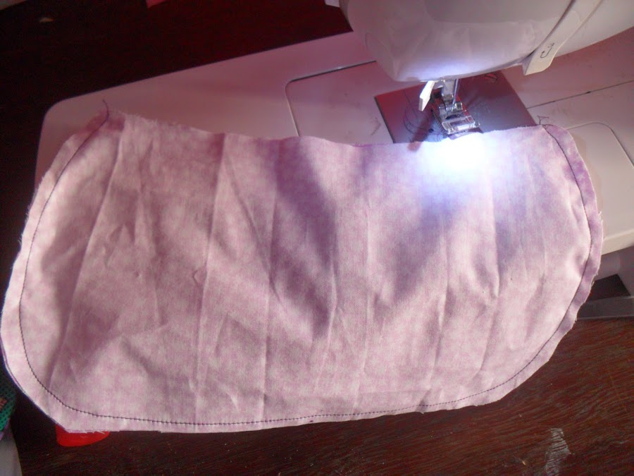 1- Passar uma costura rente para prender o tecido na manta
