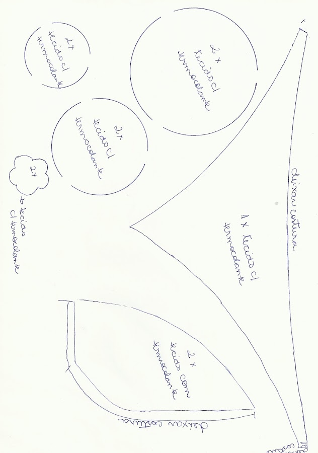 1- Passar o molde para os tecidos escolhidos
