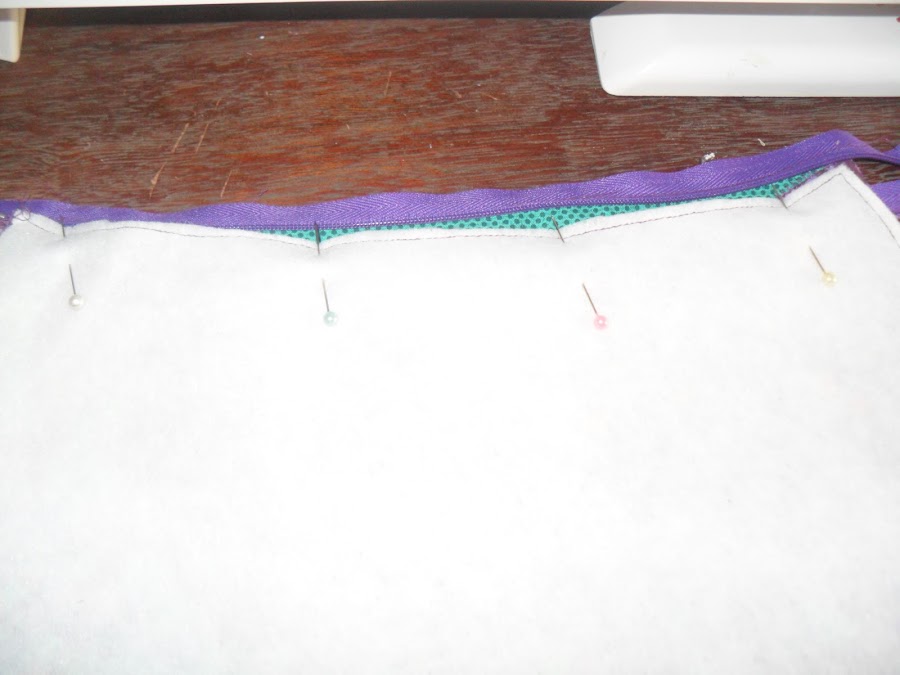 1- Alfinete o outro lado do zíper (ou alinhave) com o tecido (direito contra direito). Passe a costura