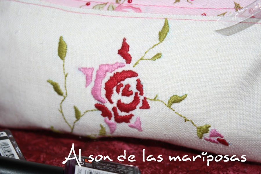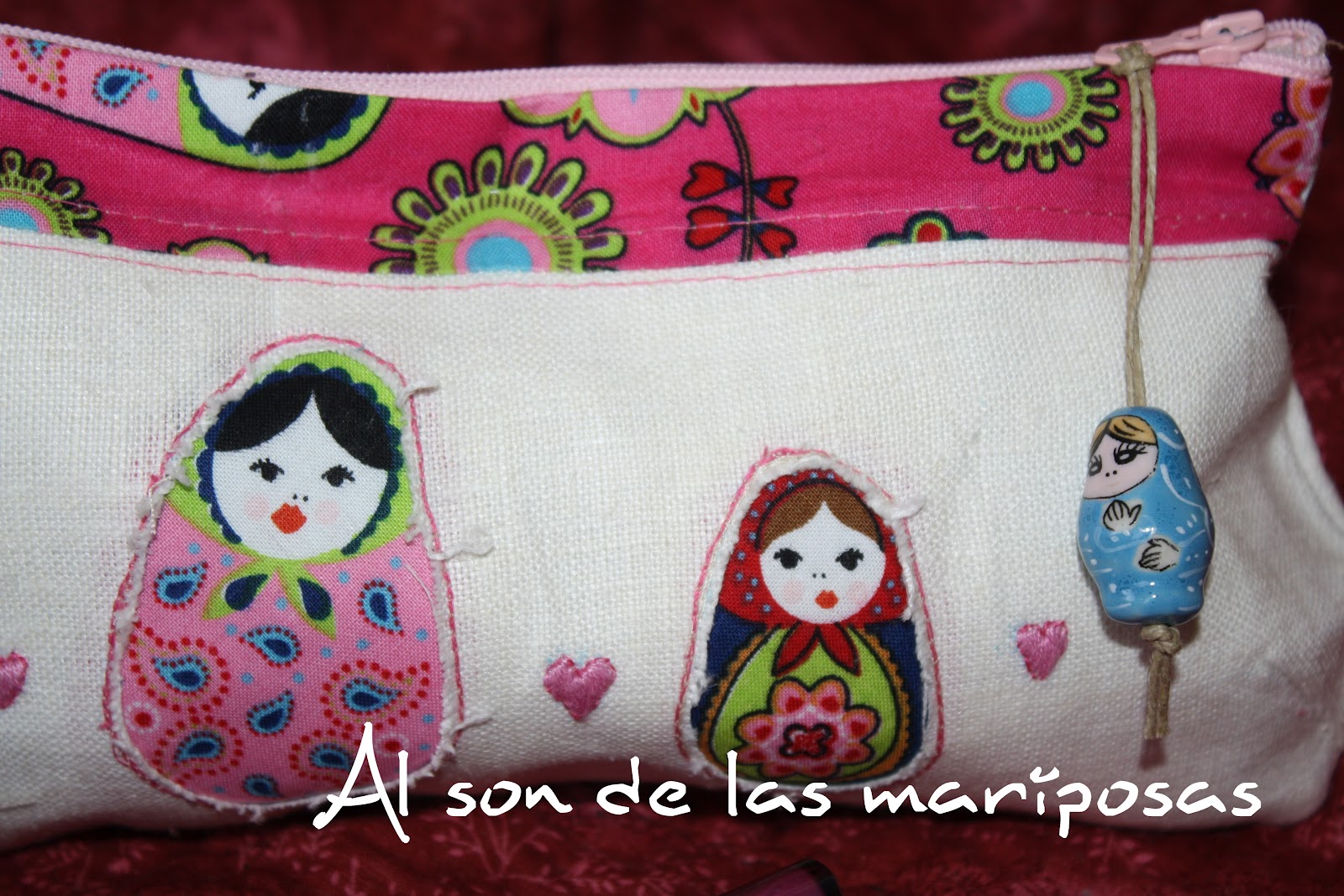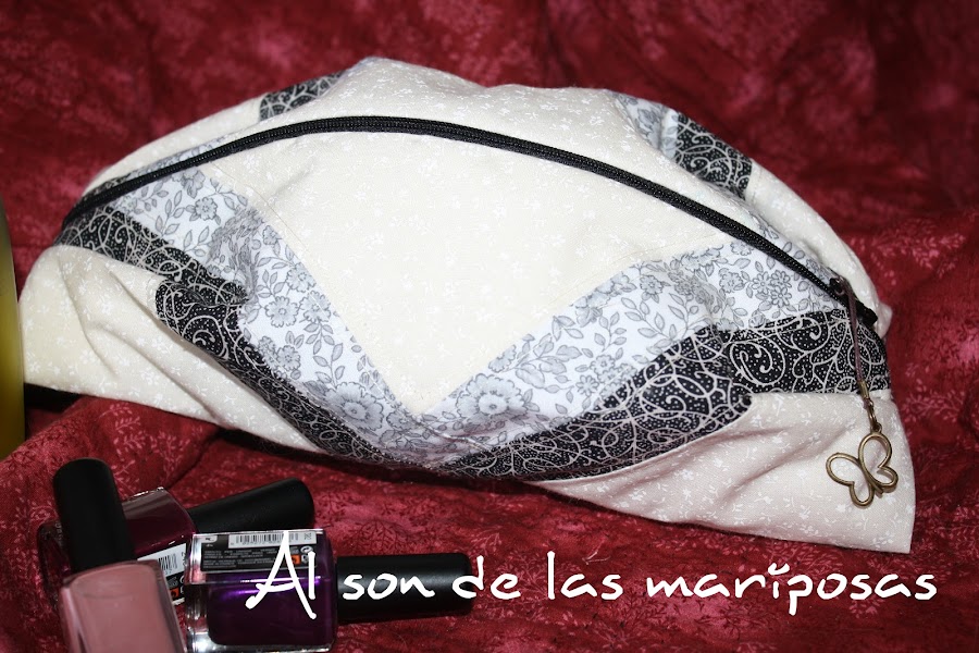 Neceser patchwork. Telas de algodón, acolchado a máquina. Forro tela de algodón. Tirador mariposa metálica.