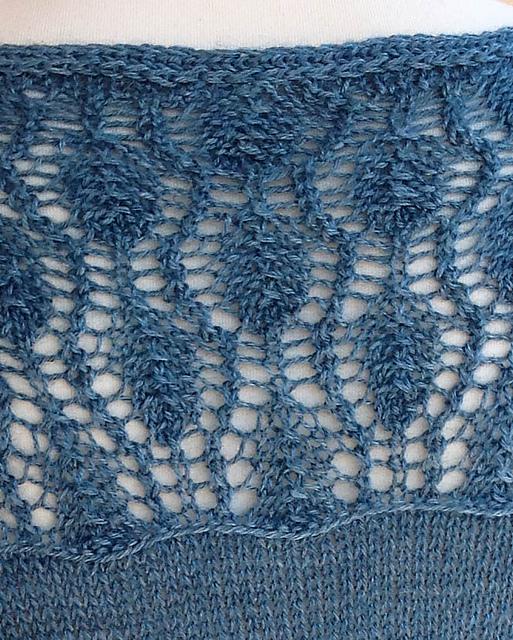 Como el borde de la espalda, cerrado tejiendo a partir de unos pocos puntos del ribete del escote delantero.