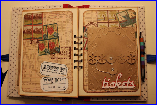 Y varios apartados con sobres para que puedan guardar mapas, tickets y/o etiquetas de recuerdo... Cada uno de los sobres están embosados con alguna Carpeta Cuttlebug.