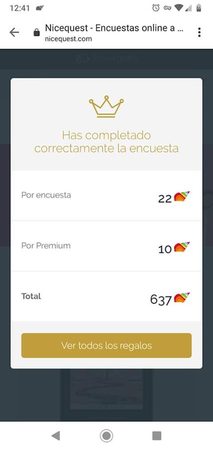 Según vayas respondiendo encuestas vas juntando caracolas para poder canjear el regalo que quieras