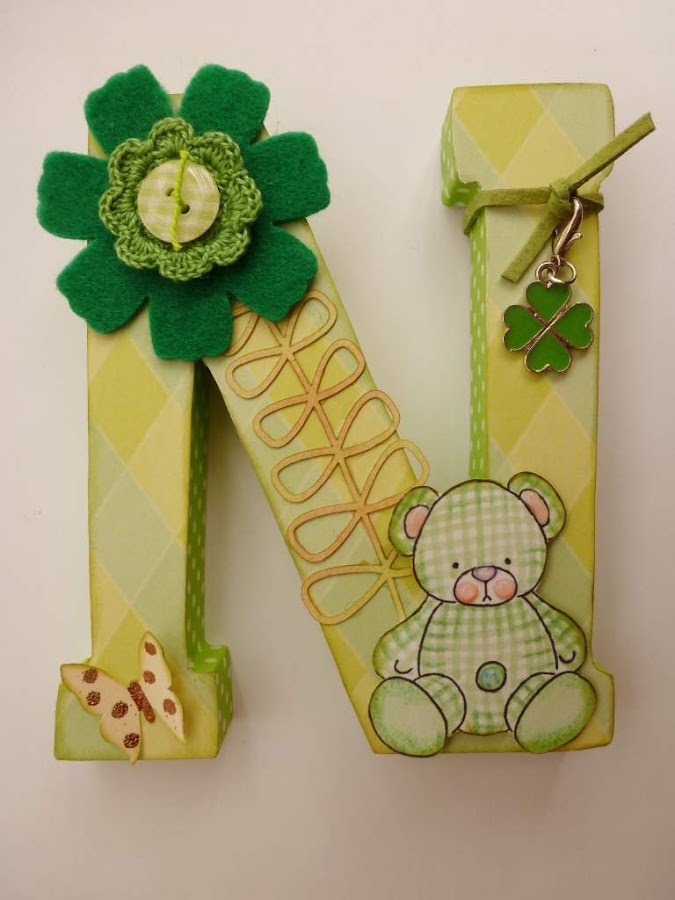 Y eso es todo, que ya es bastante. La letra llegó a su dueño, y aunque él es aún muy pequeño para apreciarla, sé que a la mamá y a la abuela les gustó mucho. Así que estoy muy satisfecha. Espero que Nicolás crezca feliz y alegre como los colores de su inicial.