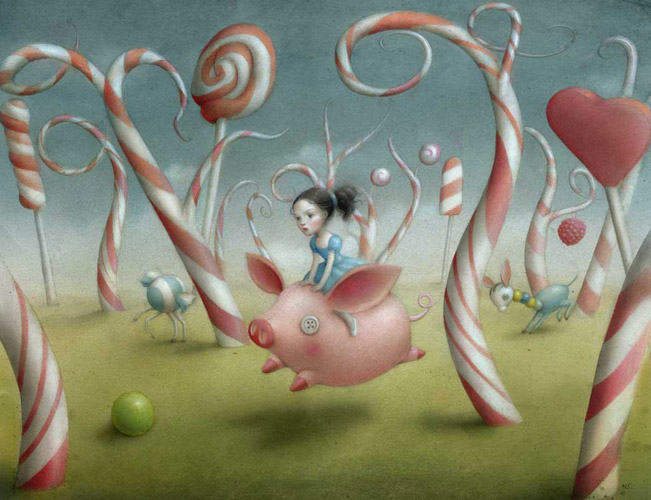 A mi me fascina, no se cual de sus ilustraciones me gusta más, pero parece que cada una de ellas cuenta un cuento entero en un solo vistazo, os voy a dejar unas cuantas ilustraciones y un enlace a una entrevista que le hicieron, por si tenéis curiosidad y queréis saber algo más de ella ;)