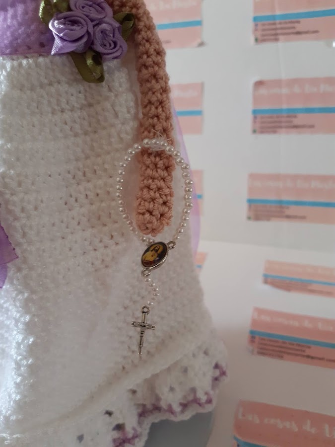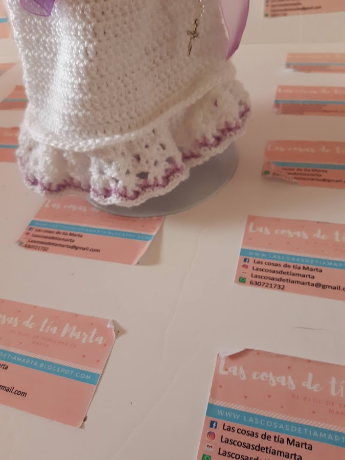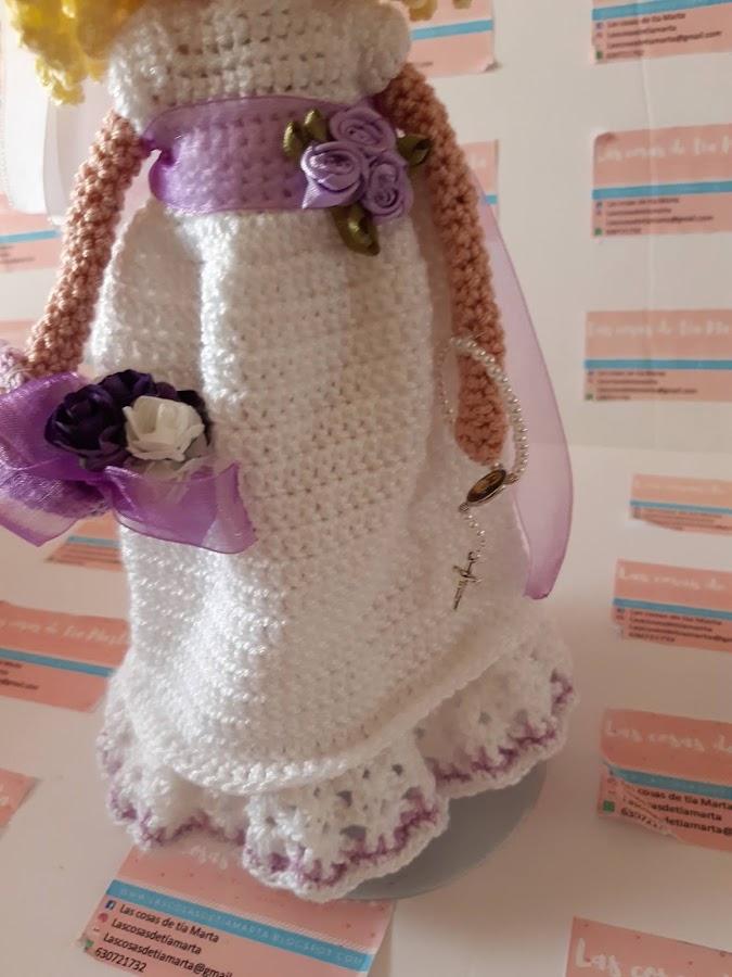 Hoy le toca el turno a esta niña vestida de blanco con fajín y detalles en lila. Y fijaros bien en esa bonita melena rubia.