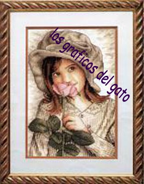 Precioso gráfico de una niña con una rosa...