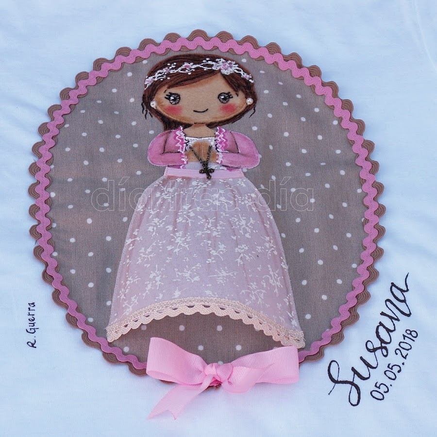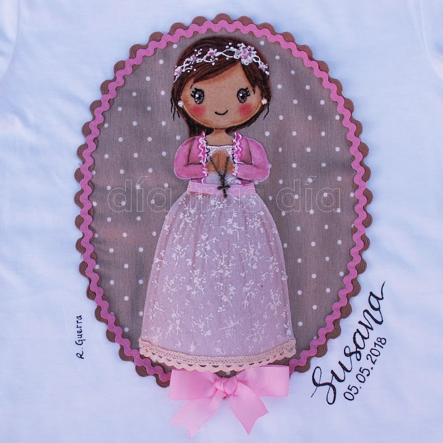 La segunda camiseta que os voy a enseñar me la encargó mi amiga Marisapara regalar a su sobrina Susana, que hace la Primera Comunión en breve.