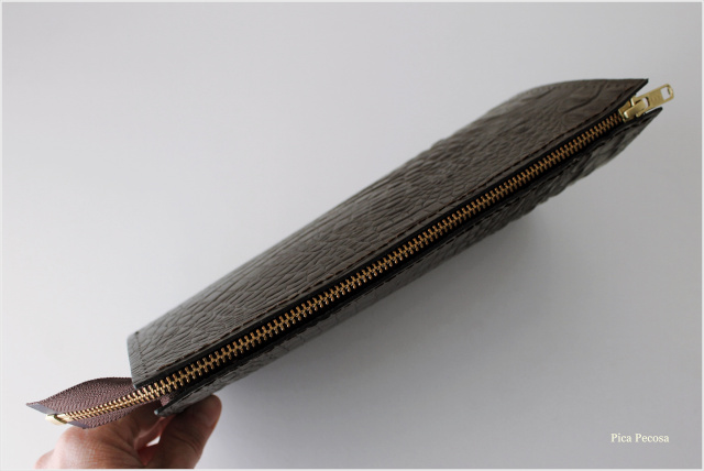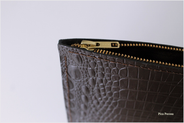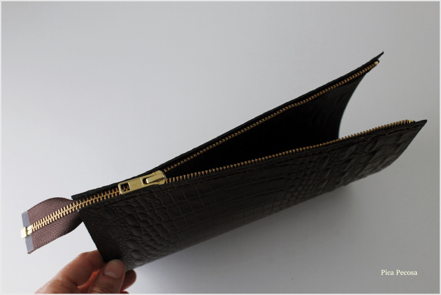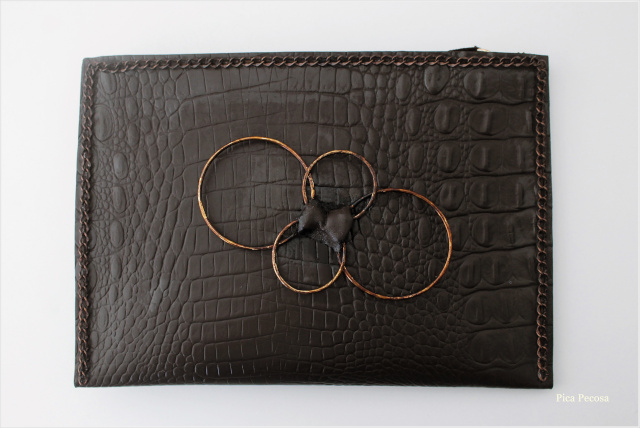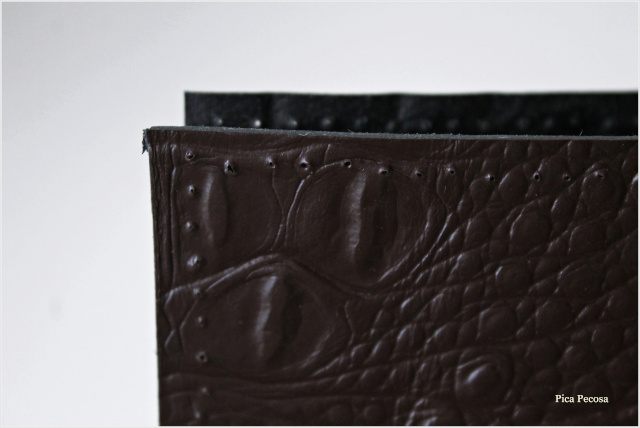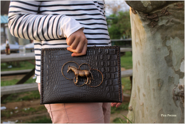 Los pendientes y la cebra como tenían poca superficie de contacto, puse entre ellos y la piel un trozo de cuero del mismo color del bolso para que se agarrasen mejor: