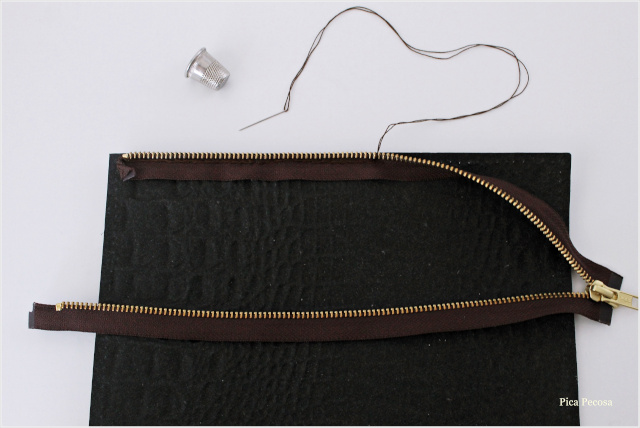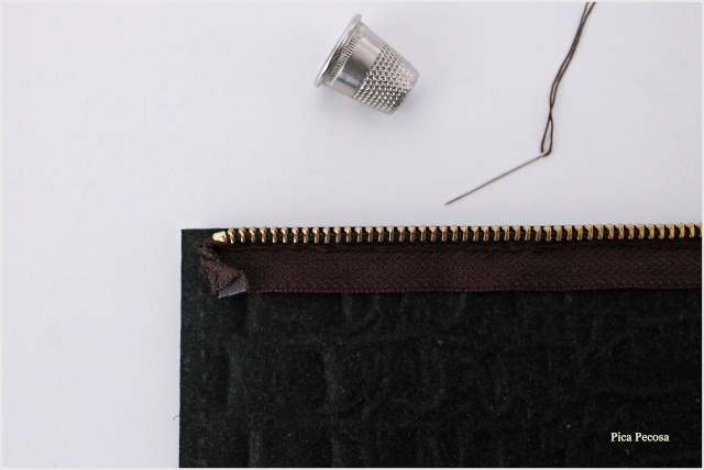 Te comento lo que me pasó con la cremallera para que no caigas en el mismo error. Después de probar varias posiciones me gustó que los dientes no sobresaliesen por encima del borde: