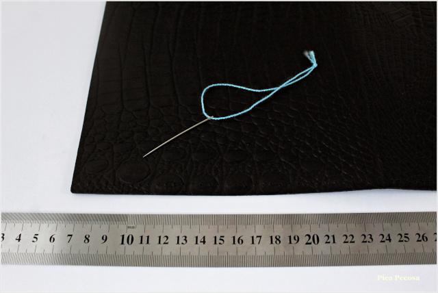 Además quería las costuras lo más cerca posible de éste, lo que me obligó a pasar el hilo a ras de los dientes: