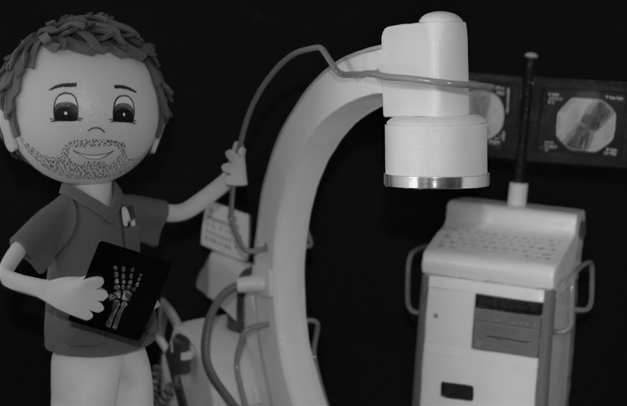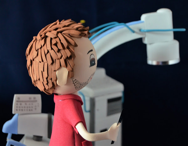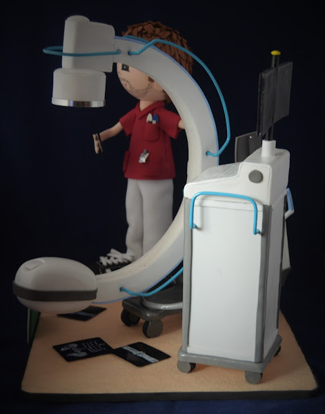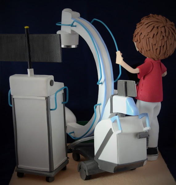Aquí os dejamos algunas fotillos mas de nuestro simpático fofutecnico de rayos, que ya esta con su dueño! Como siempre, tanto nuestro protagonista, como el aparato, un arco en C que se utiliza en los quirofanos, también esta hecho de goma eva, alambre y porexpam, todo pintado a mano y tratando de reproducir hasta el ultimo detalle!