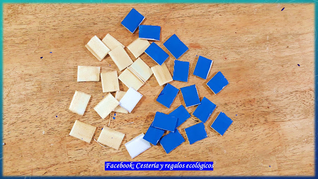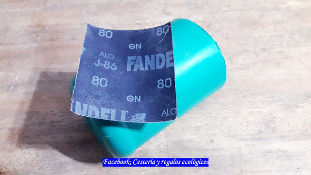 Algunas botellas van previamente pintadas antes de poner el diseño de mosaicos, por lo que debemos lijarlas un poco para que se adhiera bien la pintura...